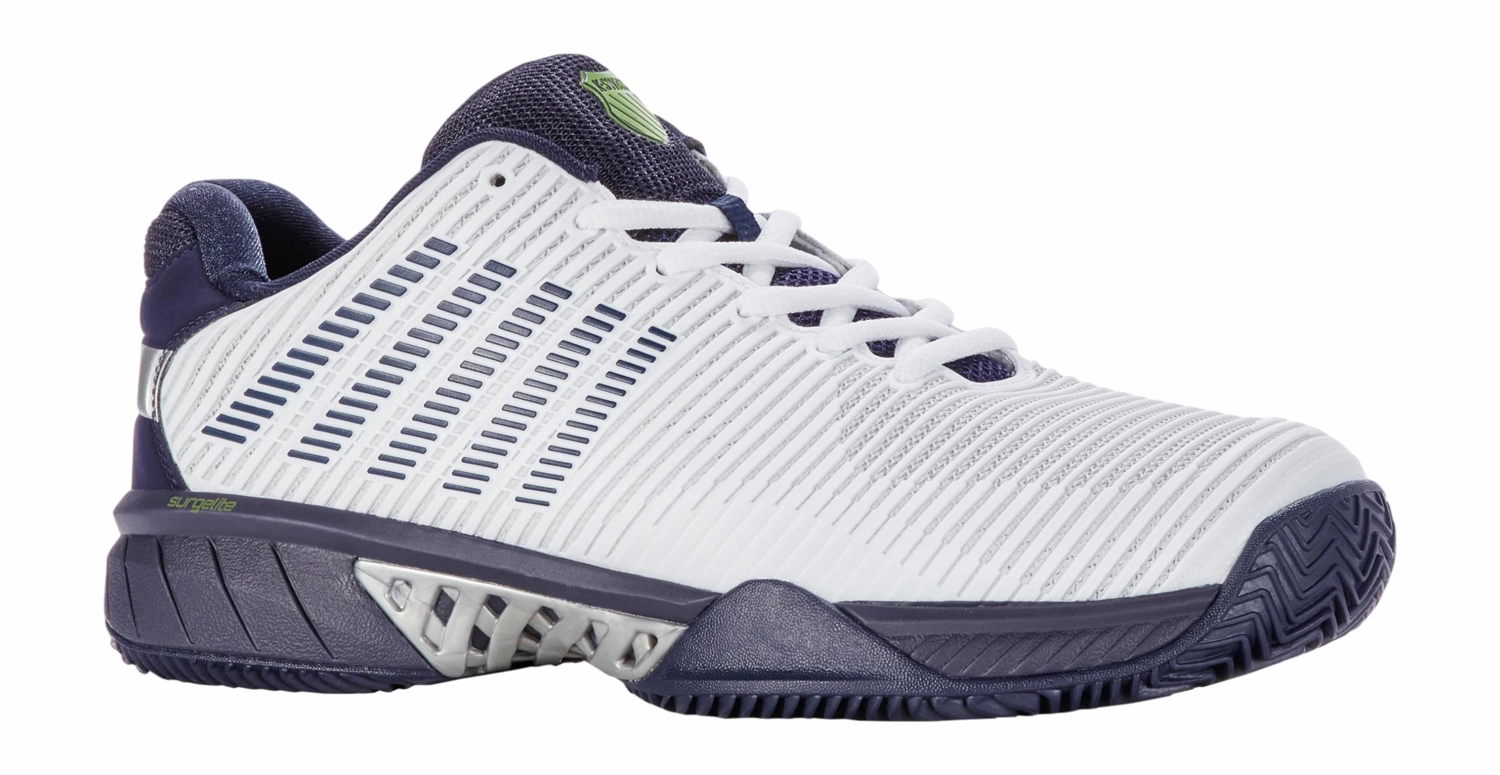 La marque K-Swiss est leader sur le marchĂ© des baskets. L’entreprise, créée en 1966, ne cesse de se dĂ©velopper et se prĂ©sente comme une marque innovante, performante et de qualitĂ©. Les chaussures K-Swiss associent Ă la fois un design très tendance et un confort immĂ©diat. On les repère très rapidement grâce aux 5 bandes sur le cĂ´tĂ© de la chaussure. N’attendez plus pour choisir votre basket de tennis! Chez TennisPlannet, vous trouverez votre chaussure idĂ©ale, que vous soyez un homme ou une femme! Cette chaussure de tennis de haute qualitĂ© de la marque K-Swiss est un ajout indispensable pour tout joueur de tennis sĂ©rieux. Avec son design intemporel inspirĂ© des chaussures de tennis classiques, la K-Swiss Hypercourt Express 2 HB offre un mĂ©lange parfait de confort, de respirabilitĂ© et d’ajustement inĂ©galĂ©. Que vous soyez un joueur dĂ©butant ou un professionnel expĂ©rimentĂ©, cette chaussure s’adapte facilement Ă diffĂ©rents styles de jeu et niveaux de compĂ©tence. FabriquĂ©e Ă partir de 100% de matière synthĂ©tique et avec une semelle en caoutchouc Ă 100%, cette chaussure est durable et rĂ©sistante Ă l’usure. La fermeture Ă lacets vous permet d’ajuster parfaitement la chaussure Ă votre pied pour un ajustement optimal. La doublure Heel Grip empĂŞche le glissement du talon pendant le jeu, tandis que la technique Stay-tied assure que les lacets restent bien attachĂ©s. La Hypercourt Express 2 HB est dotĂ©e d’une construction supĂ©rieure ultramoderne sans couture, soudĂ©e par chaleur pour une durabilitĂ© accrue. La semelle intĂ©rieure Ortholite rĂ©gule l’humiditĂ© et empĂŞche les mauvaises odeurs, tandis que le composĂ© en caoutchouc Aösta 7.0 assure une durĂ©e de vie plus longue de la chaussure. Avec la protection supplĂ©mentaire de la Dragguard 7.0, vos orteils et talons sont protĂ©gĂ©s lors des matchs intensifs. La semelle HB convient Ă tous les types de terrains, tels que la terre battue, le gazon artificiel et la terre battue artificielle. Avec la chaussure de tennis K-Swiss Hypercourt Express 2 HB, vous ĂŞtes assurĂ© de confort, de stabilitĂ© et de durabilitĂ©. Un incontournable absolu pour tout joueur de tennis. Convient aux hommes.