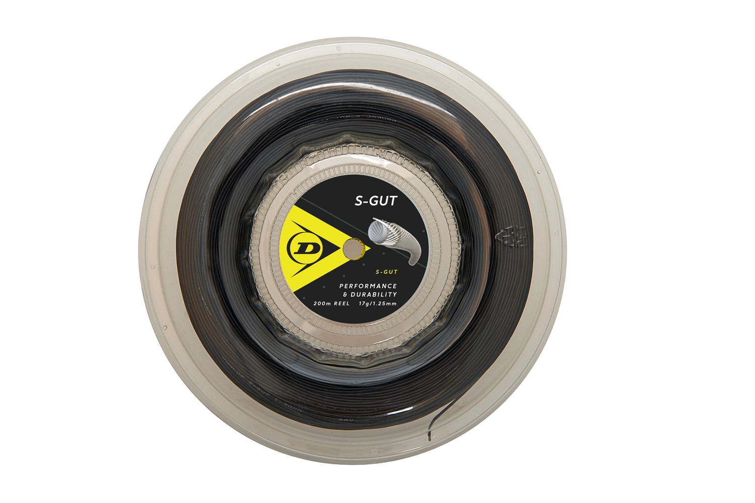 Ce cordage S-Gut de la marque de qualité Dunlop convient aux joueurs de compétition, aux joueurs de club et aux joueurs récréatifs. Il a une épaisseur de 1,25 millimètres et est fabriqué à partir de boyau synthétique. Ce cordage peut être caractérisé comme un cordage complet. Le cordage est noir et convient à tous les types de raquettes. Ce paquet contient 200 mètres de cordage.