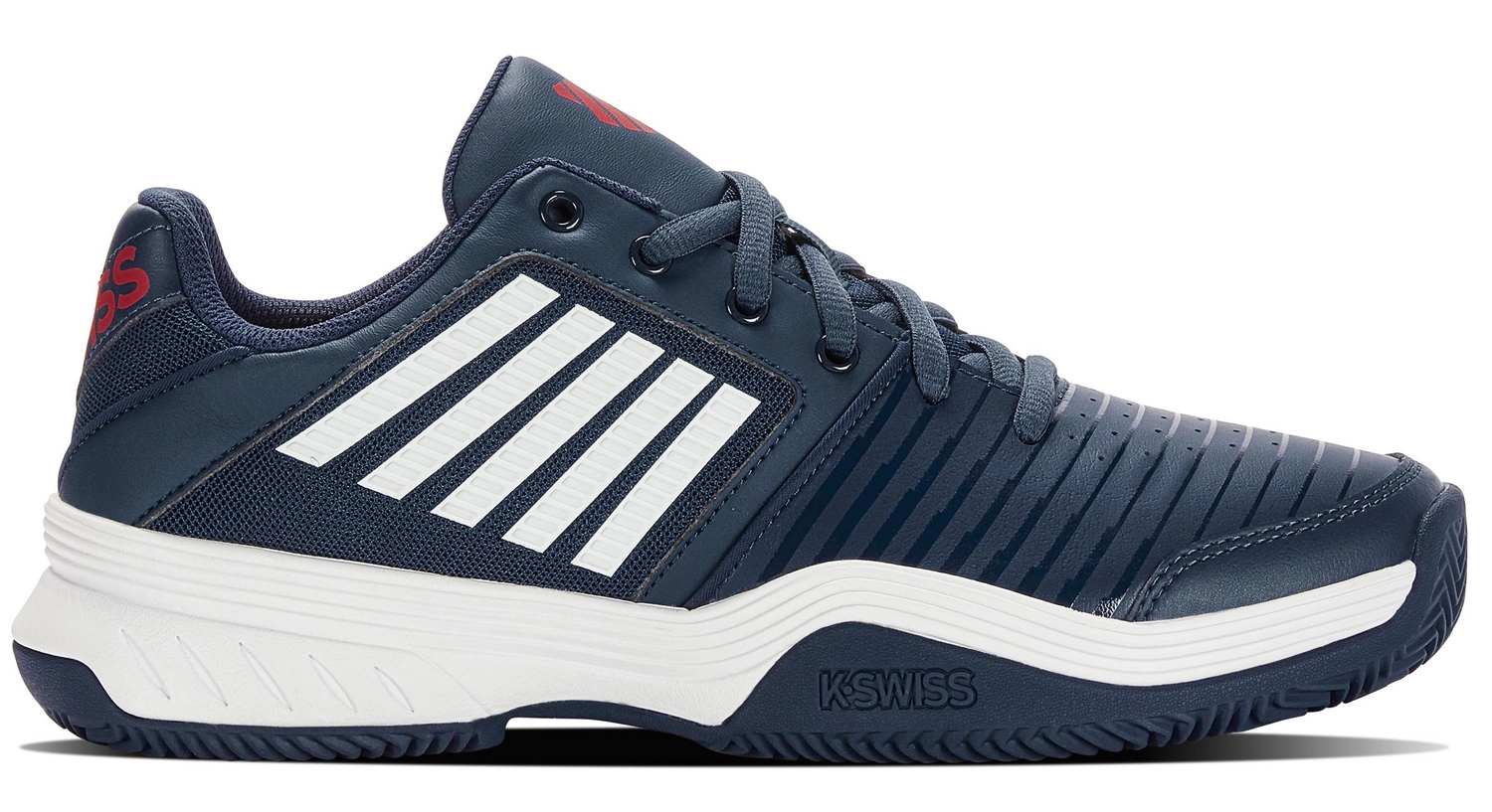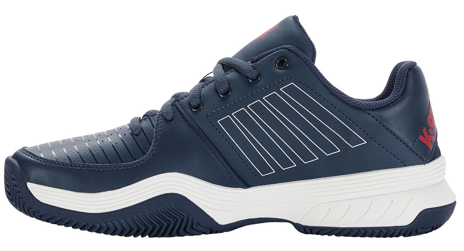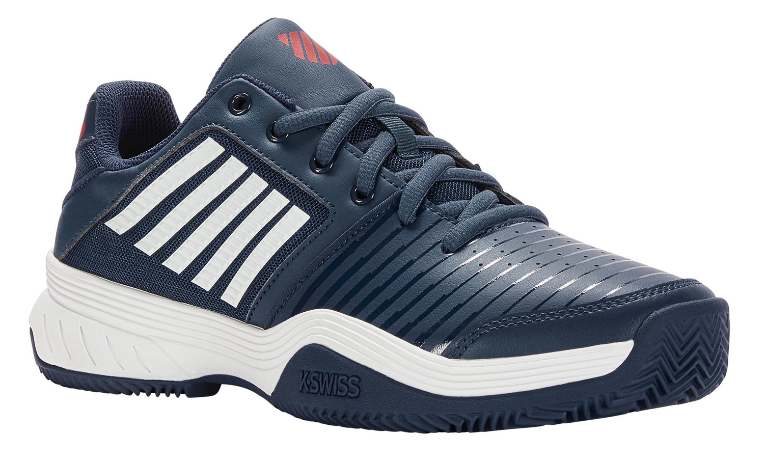 La chaussure de tennis Court Express HB de K Swiss est une excellente chaussure pour tout joueur dĂ©butant Ă la recherche de confort. La chaussure a une tige en cuir synthĂ©tique et une doublure textile. La chaussure est Ă©quipĂ©e d’une semelle intermĂ©diaire en EVA qui absorbe bien tous les chocs et vous offre le bon soutien lors des mouvements latĂ©raux. La chaussure est polyvalente et convient aux surfaces Gravel, Hardcourt, Smashcourt et Artificial Grass. En raison des rainures profondes du motif Ă chevrons de la semelle extĂ©rieure en caoutchouc, cette chaussure a une adhĂ©rence maximale. Cette chaussure offre un soutien et une libertĂ© de mouvement suffisants pour chaque joueur de tennis dĂ©butant.