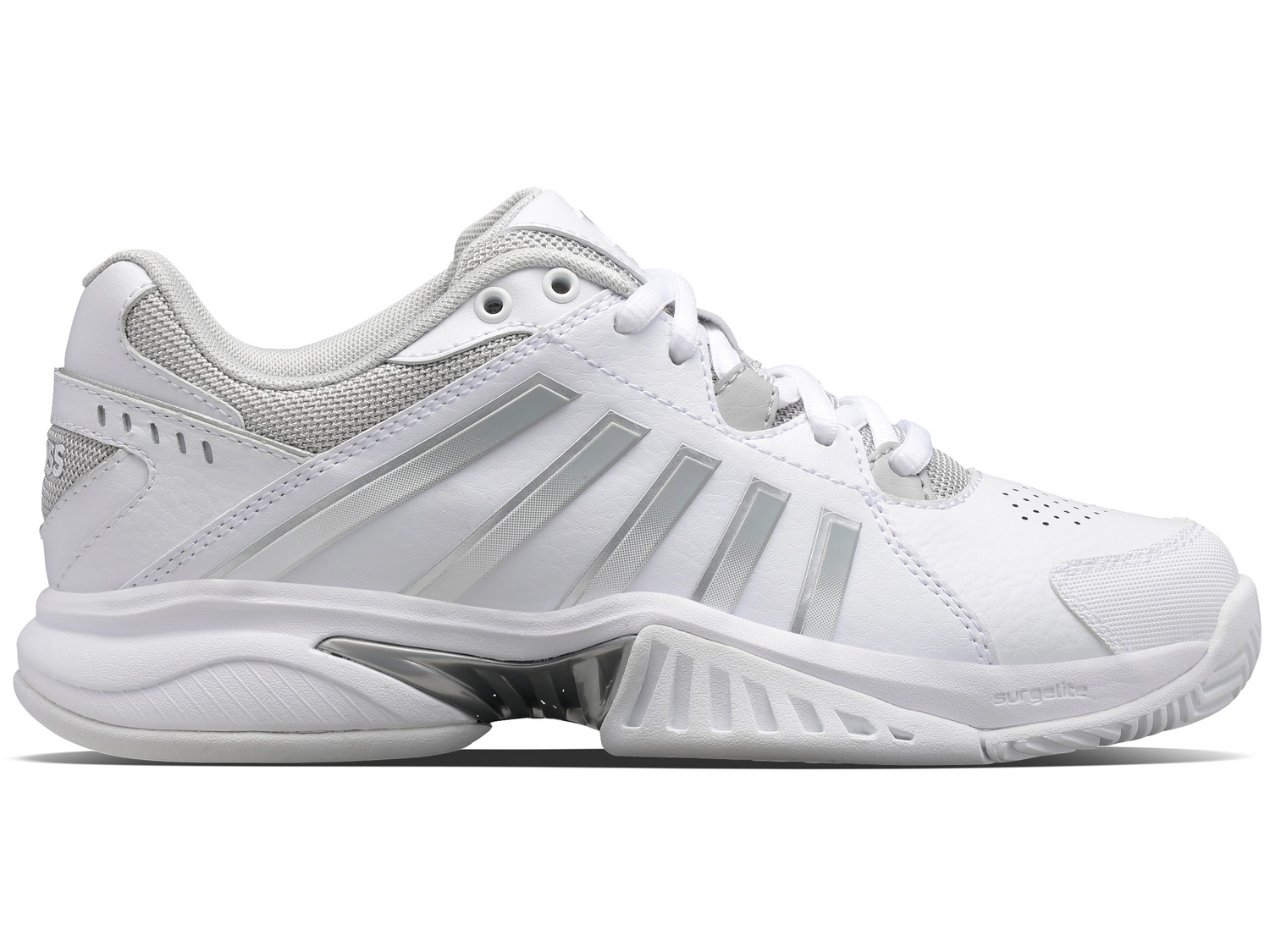 Il s’agit de la chaussure de tennis polyvalente Receiver V de K-Swiss. Cette chaussure de tennis classique a une tige en cuir synthĂ©tique et naturel. La languette en mesh et les trous d’aĂ©ration assurent la respirabilitĂ©, ce qui vous permet Ă©galement d’utiliser parfaitement ces chaussures pendant les chaudes journĂ©es d’Ă©tĂ©. Le Receiver V a une semelle extĂ©rieure, qui convient Ă toutes les surfaces. La semelle a des rainures moins profondes et la plaque tournante vous permet de vous dĂ©placer rapidement sur la piste. Cette chaussure K-Swiss possède de nombreuses caractĂ©ristiques techniques. Par exemple, le DuraWrap lĂ©ger offre une rĂ©sistance supplĂ©mentaire Ă l’usure dans les zones les plus sensibles et le composĂ© de caoutchouc Aösta II offre une plus grande durabilitĂ© du talon aux orteils. Grâce Ă la technologie K-Eva dans la semelle intermĂ©diaire, vous bĂ©nĂ©ficierez d’un amorti maximal et le châssis 180 PSC Plantar offre une stabilitĂ© autour du mĂ©dio-pied. Enfin, la chaussure est finie avec un dessus hydrofuge, sans compromettre la respirabilitĂ©.